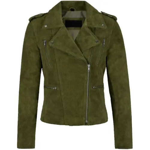Women’s Genuine Goat Suede Biker Jacket Lola Olive Green Regular price