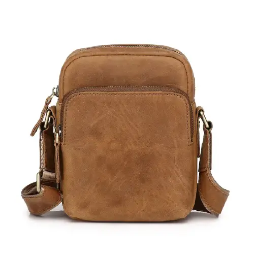 Mens real leather crossbody bag in stylish Jett Tan Hunter finish. Compact, durable, and versatile — ideal for travel, daily essentials, and on-the-go organization.