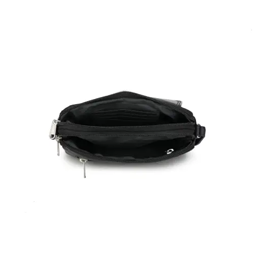 This sling bag features a sleek, contemporary design suitable for men and women. Its compact yet spacious interior comfortably holds essentials like wallet, phone, keys, sunglasses, and other small accessories, making it perfect for everyday use or travel.